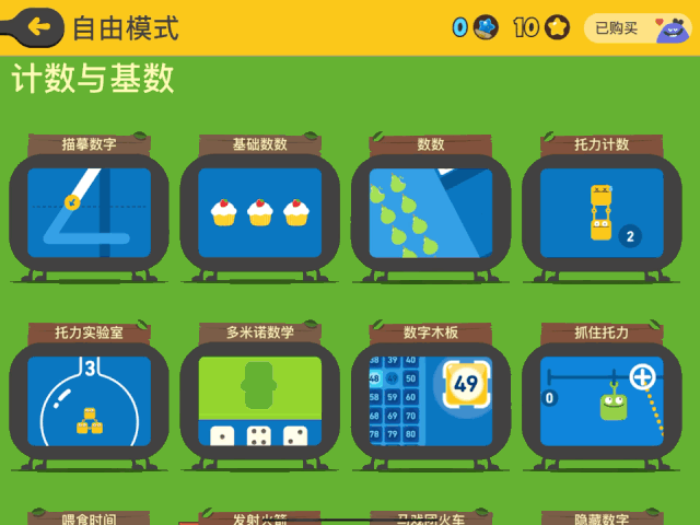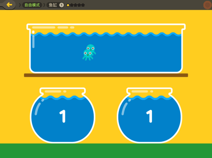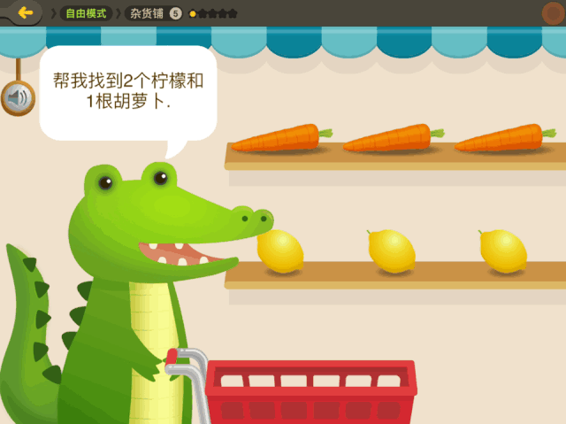 很多游戏都融入了孩子熟悉的场景,比如超市购物,养金鱼,这种情景式教学会让孩子更加有共鸣;