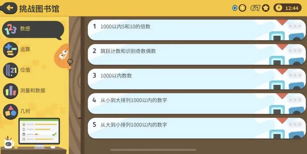 这个挑战图书馆的版块只有到达E级才会出现,在这里小朋友会接受更高的挑战。