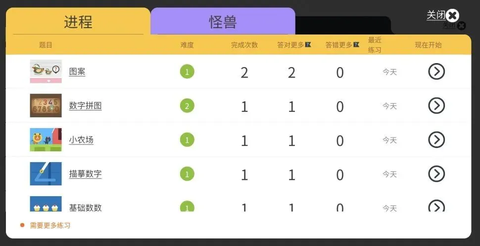 每个星星关锤炼一个知识点,包含3-4个小关卡,就是孩子一天的学习任务啦。