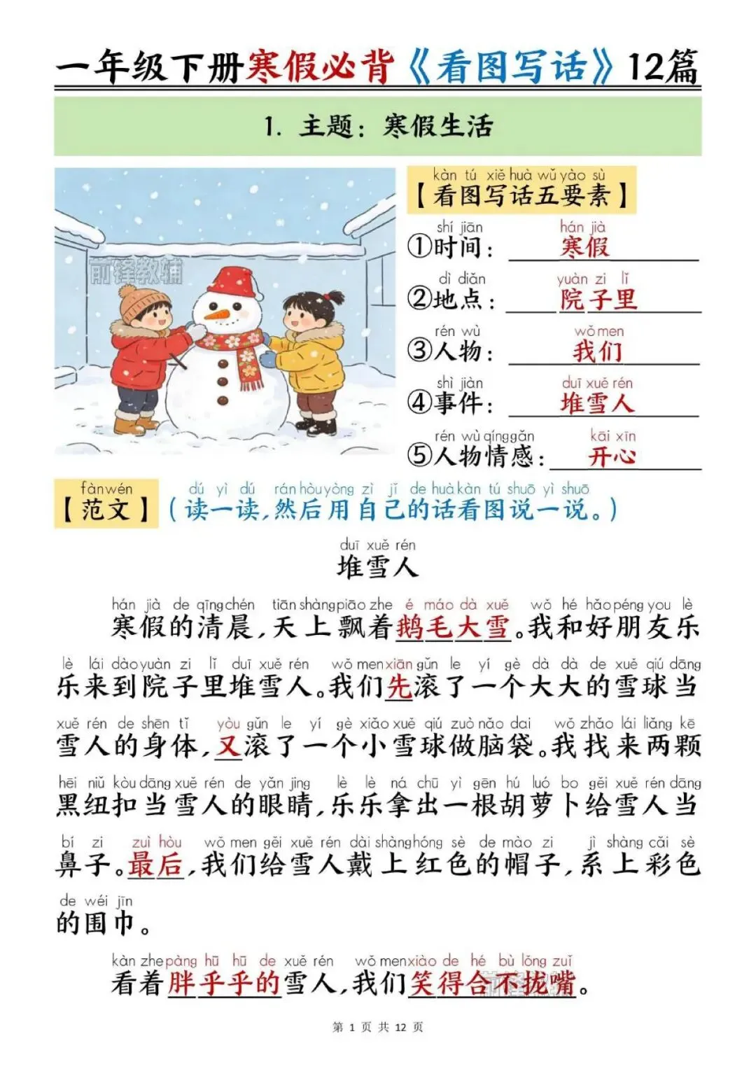 一下语文必背《看图写话》12篇,可下载打印 文末有高清电子版领取方式 由于篇幅有限,高清完整版请下载电子版哦 领取完整电子版方式: ①:发财的小手点一点右下角“👍”和“❤️” ②:关注公众号后,在对话框中回复:004 (点击名片可直接关注)↑↑↑