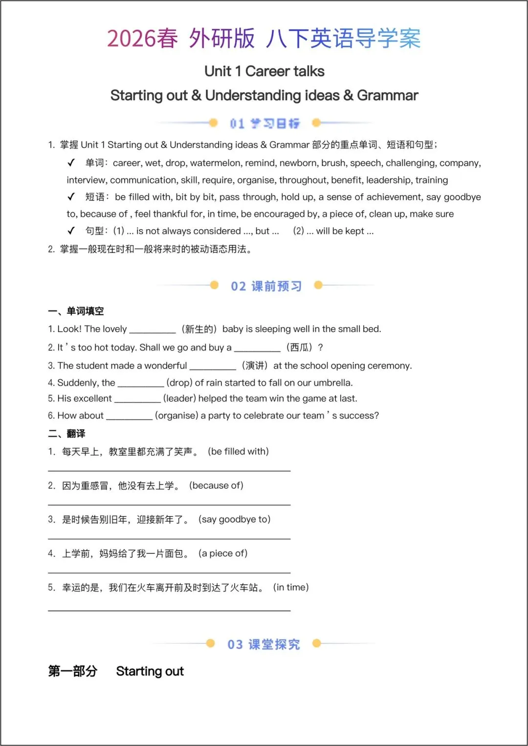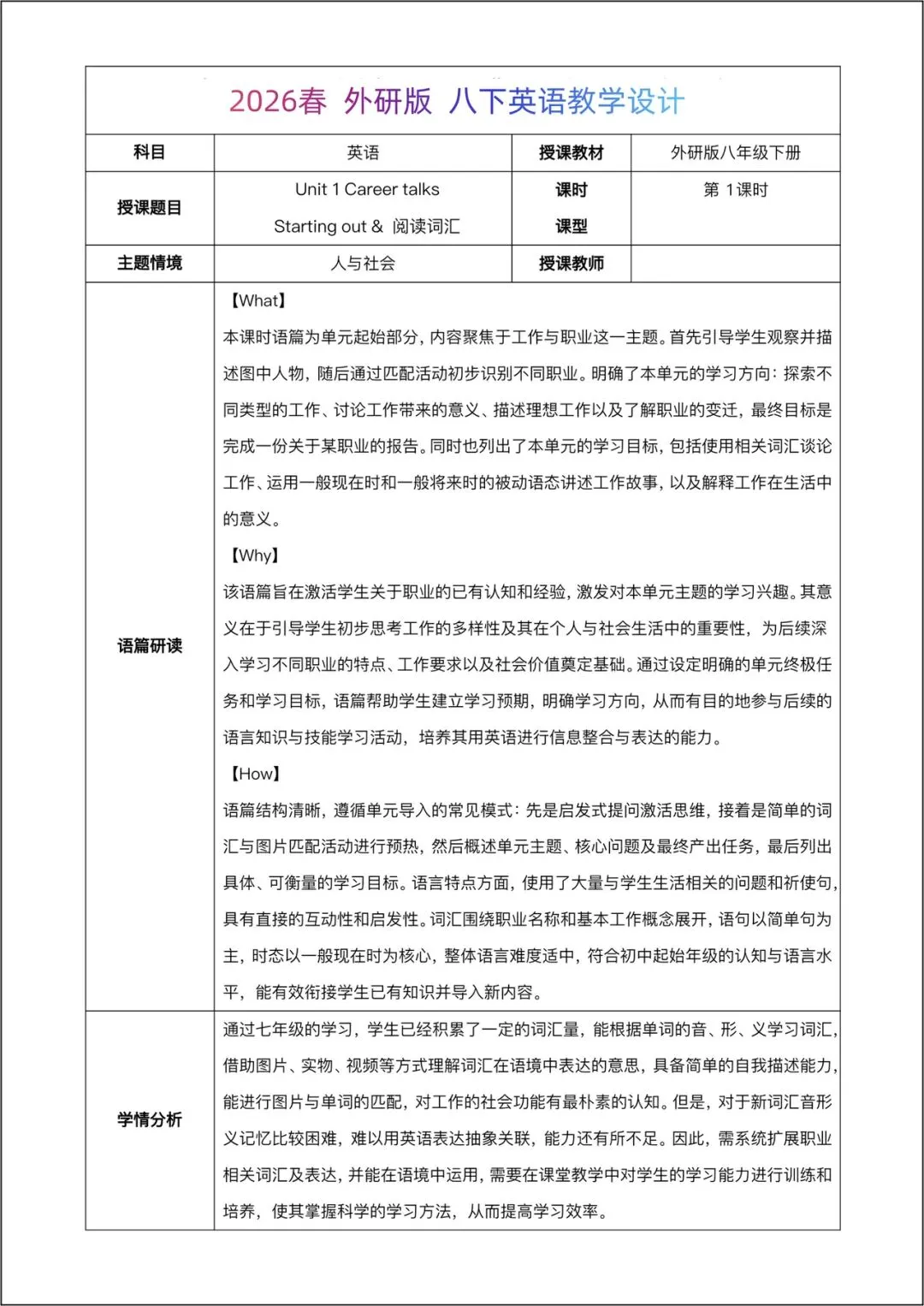 2026春新(外研版)八年级下册英语教学设计教案+导学案+精品课件+单元核心知识点+同步练习,电子版可打印!