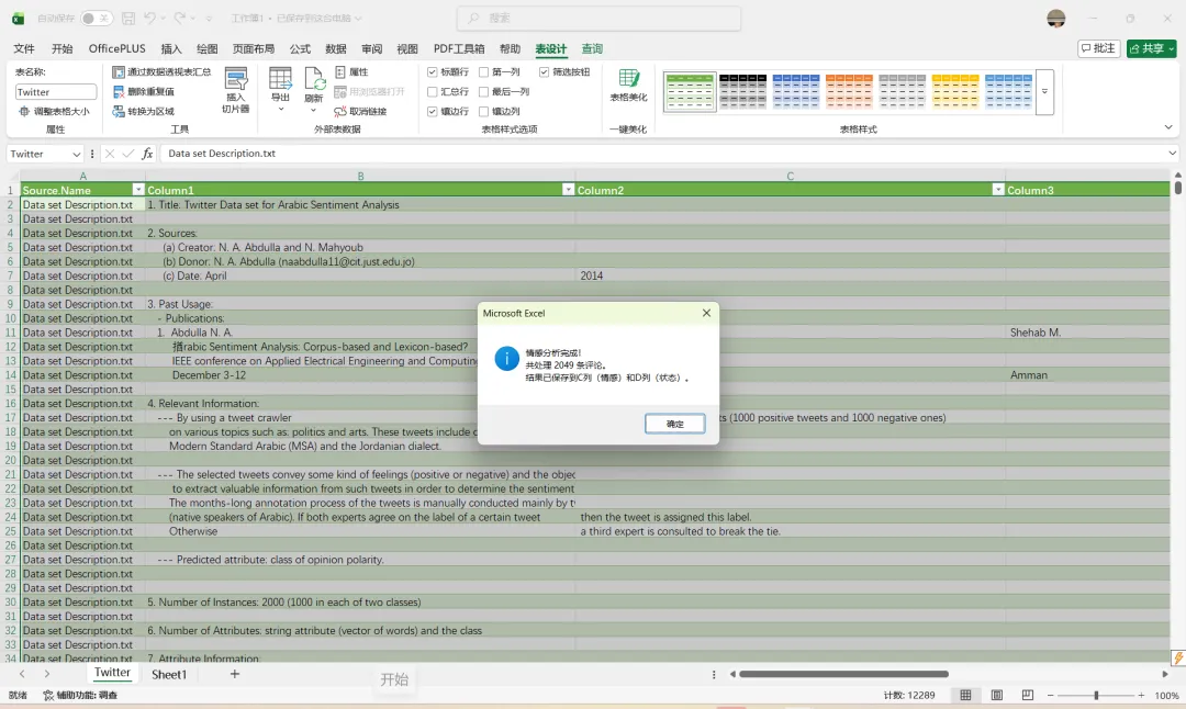 等个差不多五分钟,2049条评论就分析成功了,具体时间大家可以根据这两千条评论所需要的时间去推算一下。