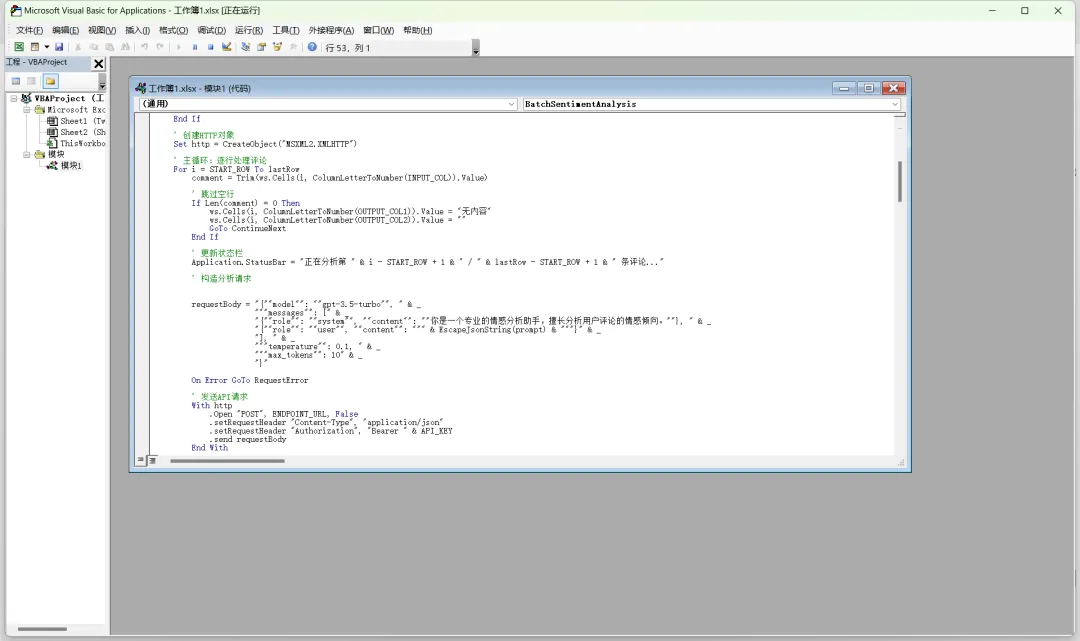 Excel作为企业最熟悉的数据处理工具,通过VBA(Visual Basic for Applications)可以实现与MaaS API的无缝对接。核心逻辑就是:读取Excel中的用户反馈列表→调用蓝耘MaaS API获取情感标签→将结果写回Excel指定列。这里的用户反馈列表我会在下面提供如何获取的操作步骤,大家可以稍微帆帆。