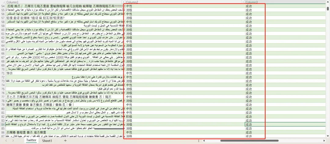 分析完成后,C列会显示情感标签,D列显示成功或者失败