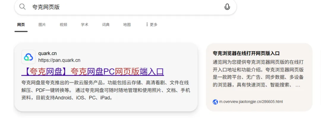 1、搜索夸克网盘