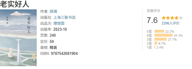 《赵桥村》书写季节和自然的浪漫,《在俄国》记录千禧年的留学生活。这一次,作家顾湘带来全新小说集《老实好人》,收录她近年创作的十一篇中短篇作品。卖燕子的人、和平公园里昔日的爱人、上海郊外的老人、音乐节的朋友、租房失火的城市白领、在异国恋爱的学生……这些人忽然出现,又忽然消失,像一团蘑菇,一棵树,一阵风,一个星球,和宇宙间所有的事一样。