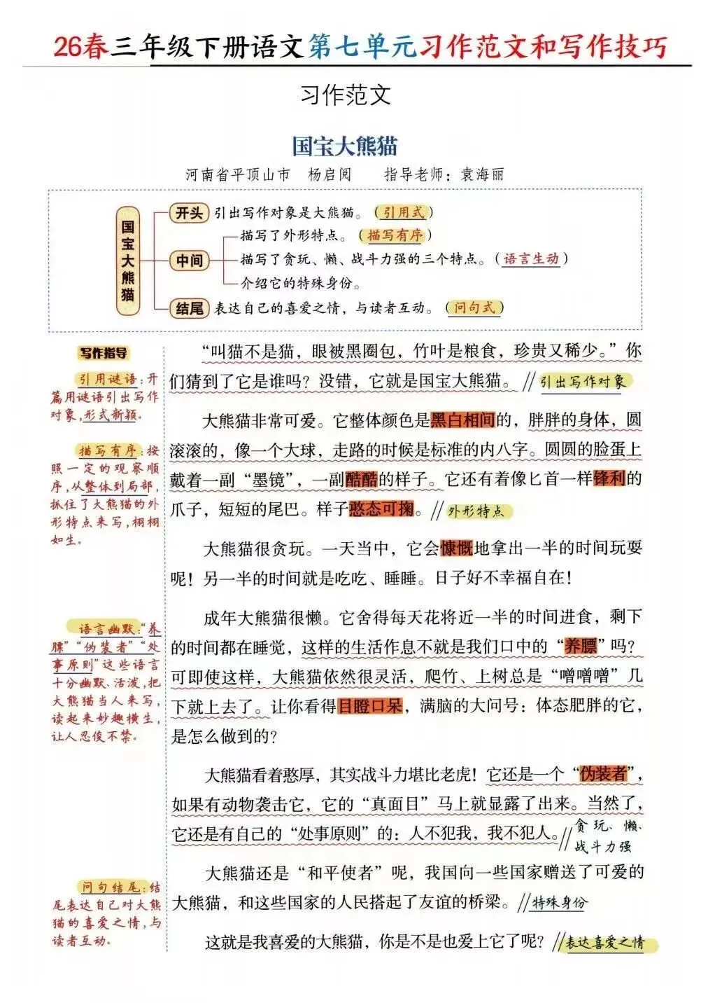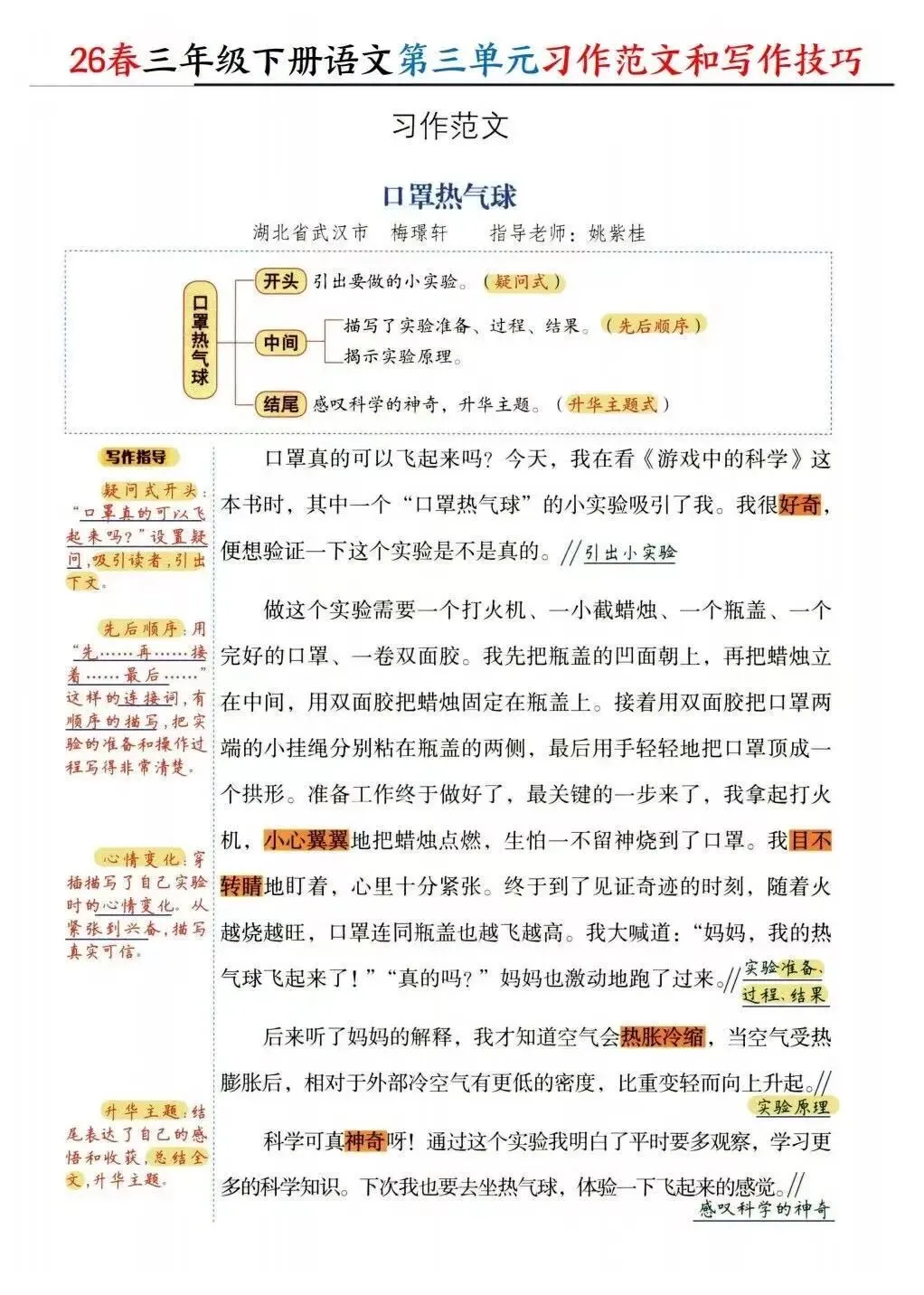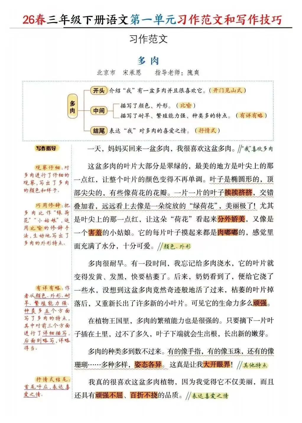 单元习作范文+写作技巧(有完整版可打印)