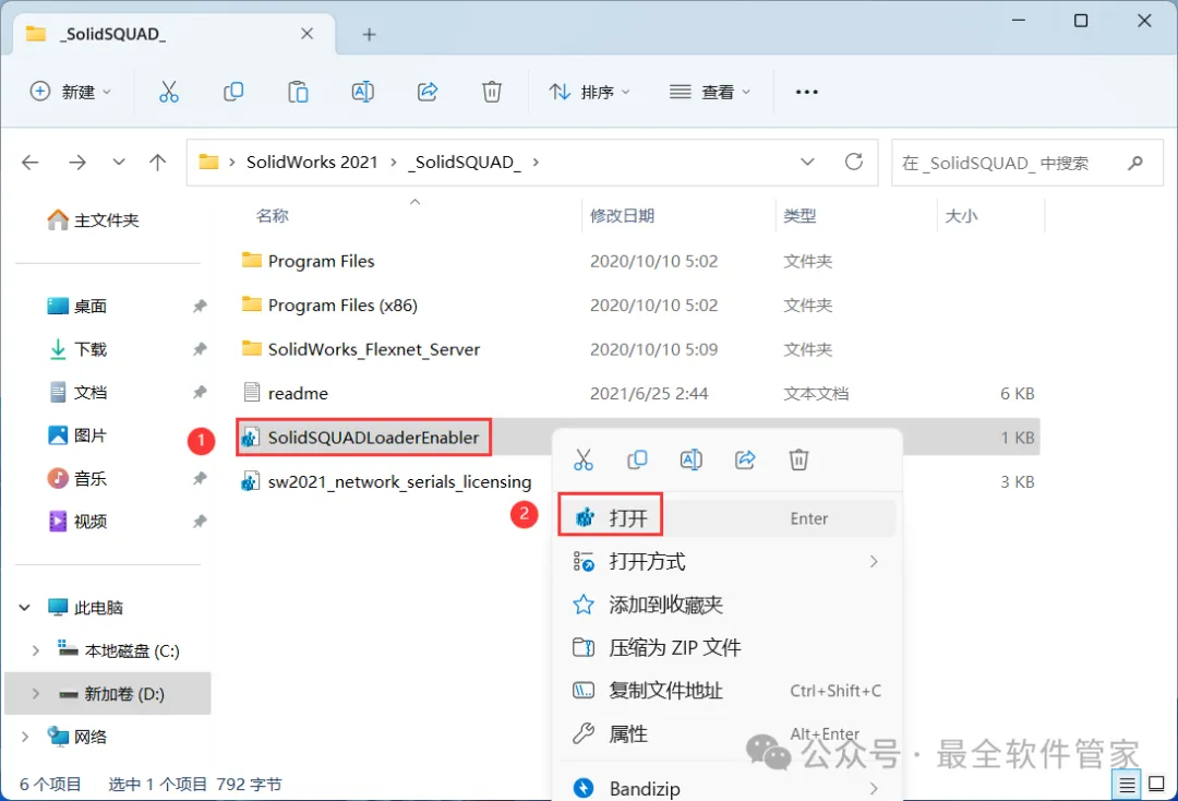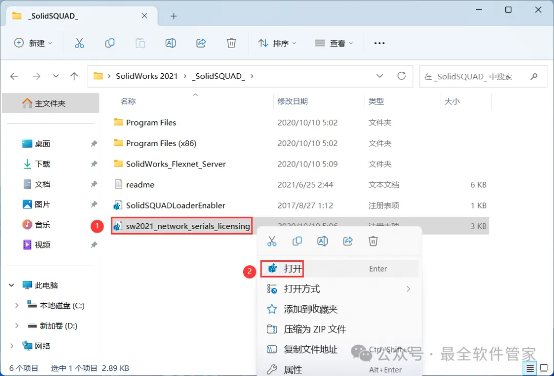 4、找到【sw2021_network…】文件,右键【打开】它