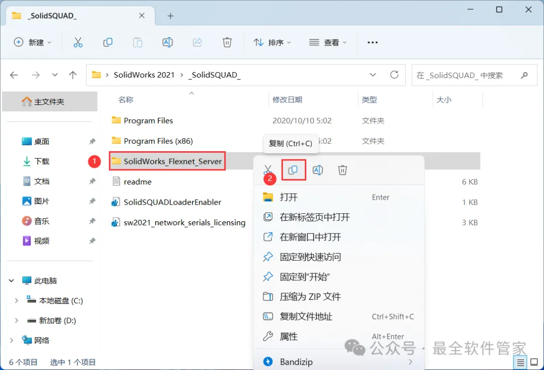 7、找到【SolidWorks_Flexnet_Server】文件夹,右键点击【复制按钮】