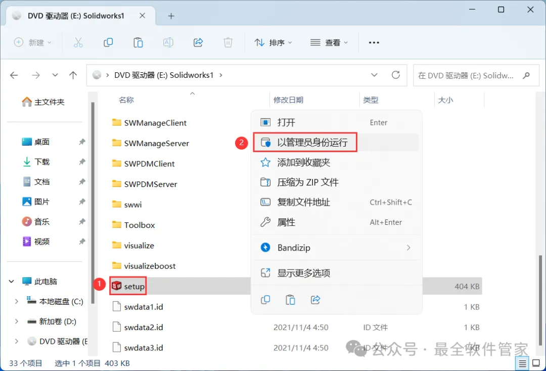 14、找到【setup】应用程序,右键选择【以管理员身份运行】它