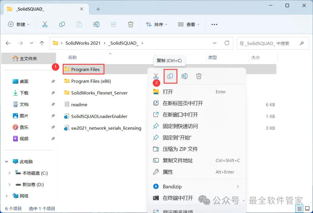 25、回到_SolidSQUAQ_文件夹,找到【Program Files】文件夹,右键点击【复制按钮】
