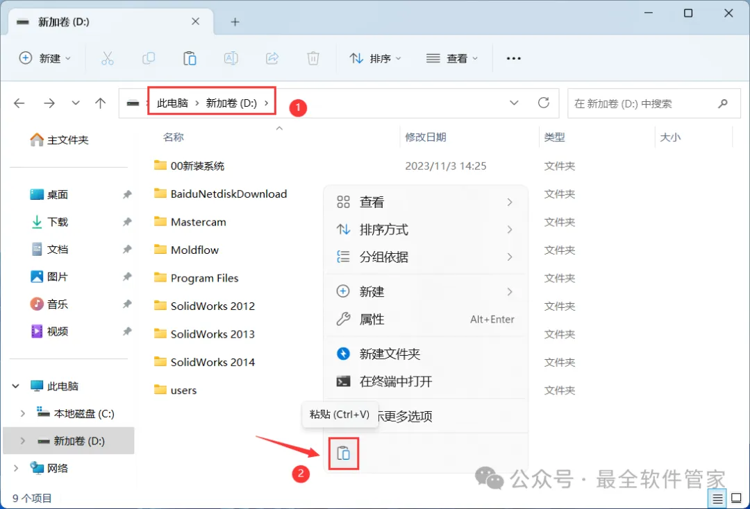 26、打开路径:D:\Program Files,右键文件夹的空白处,点击【粘贴按钮】