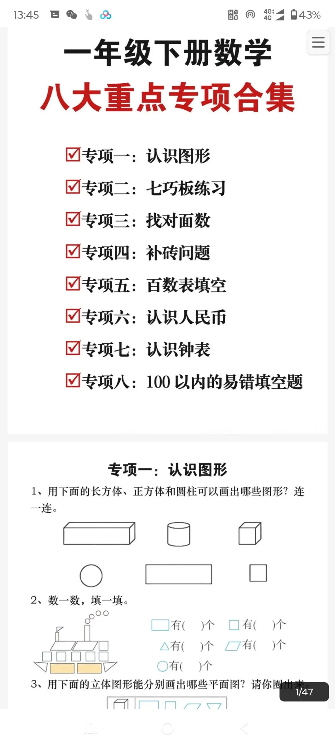本文内容分享【数学重点专项合集1-6年级下册】