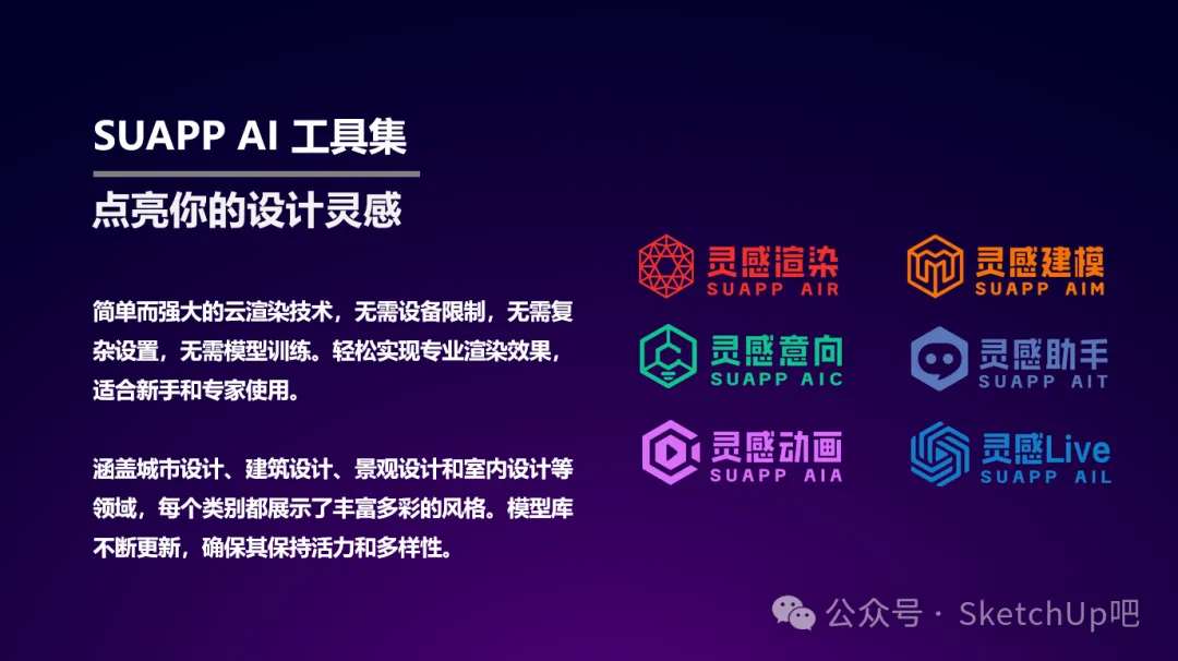 SUAPP AI团队揭秘了SUAPP AI(SUAPP灵感渲染、灵感动画、灵感建模、灵感意向、灵感助手) 技术在设计工作流中的具体实战应用。