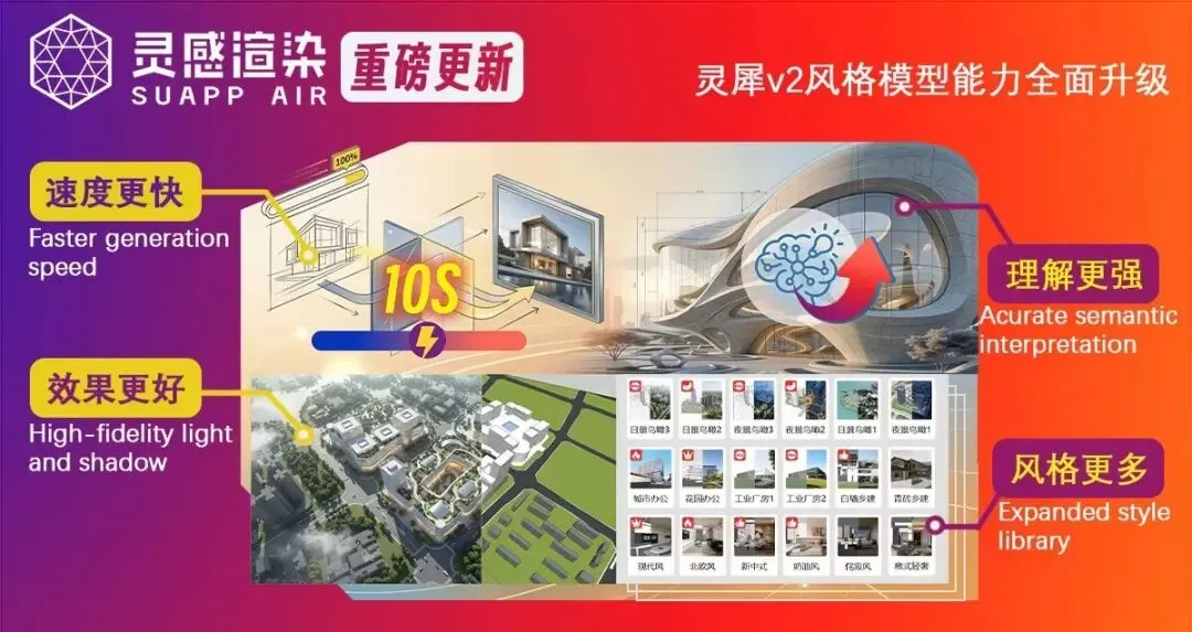 SUAPP灵感渲染「史诗级」更新,更快、更强、更精准、更简单、风格和预设词更多: