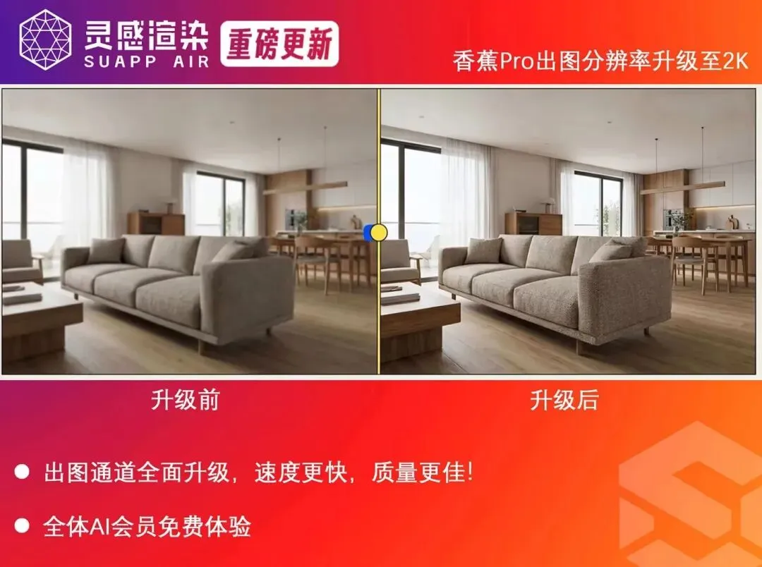 26年年初,SUAPP灵感渲染迎来史诗级更新!香蕉图Pro + 灵犀V2自研模型,构成SUAPP AI工作流的完整技术底座。