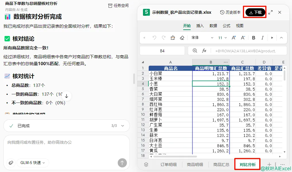 还会贴心提供一份可下载的 Excel 原件(包含源数据表和对比分析表)。