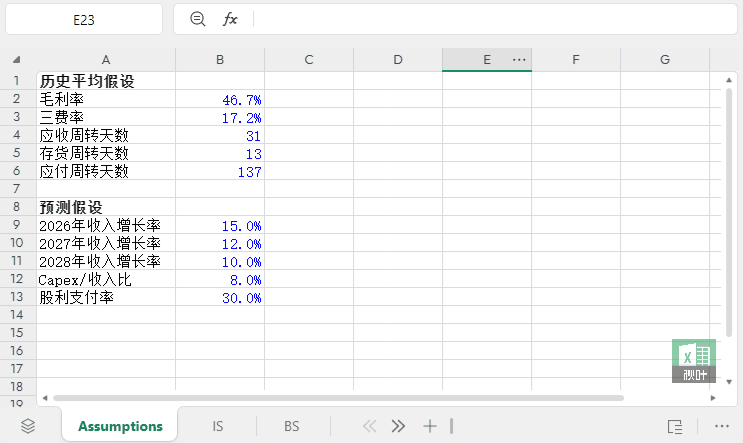 请设定以下可调参数,在结果表中设为独立单元格便于后续修改: