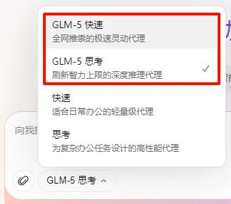 GLM-5 快速(极速响应):适合简单任务。比如「帮我筛选出上个月的离职人员名单」,这个模式基本是秒响应,速度快。