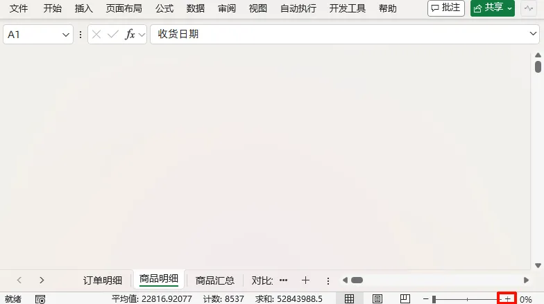 ❷ 下载的文件有时候看起来某些工作表内容消失了(解决方法是放大窗口:按住【Ctrl 键】向上滚动鼠标滚轮,或者点击右下角的+放大就能看到)。