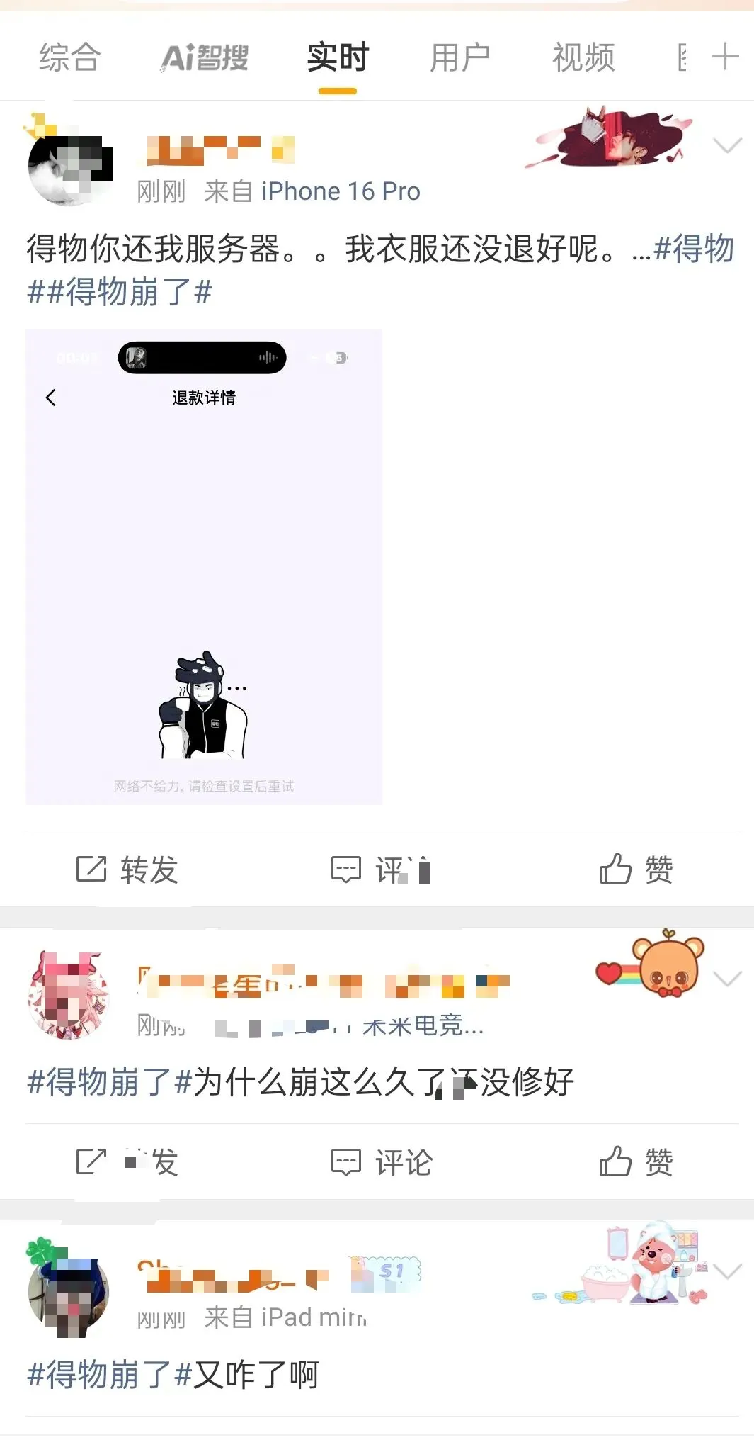 得物APP崩了,支付中断,大量用户反馈无法完成订单支付,部分页面显示异常,客服回应:服务器问题