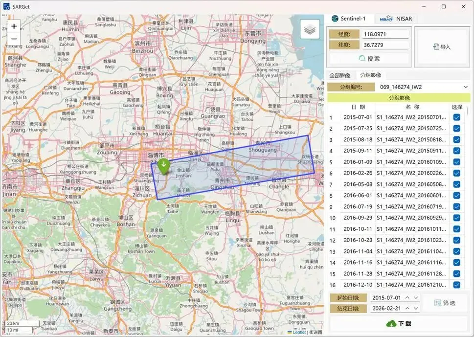 为应对这一挑战,我们开发了SARGet软件。本软件旨在为小区域长时序InSAR处理提供一套高效、精准的数据快速下载解决方案。