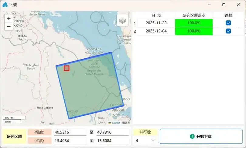 灵活裁剪:针对新一代NISAR卫星任务数据,软件提供了自定义裁剪下载功能。用户可预先设定研究区域范围,软件在下载过程中将自动对数据进行裁剪(该过程无需预先下载完整文件),极大降低对网络传输及本地存储资源的占用。