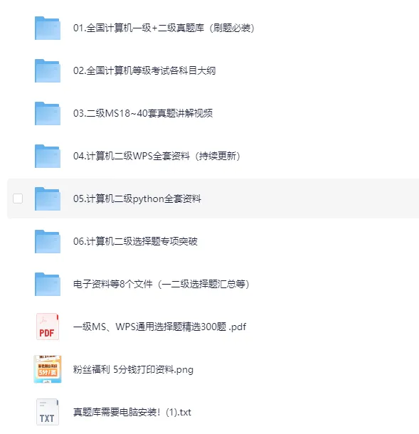今天给大家分享一下:计算机二级WPS的全套资料,包含考试大纲、考试软件、考试最新题库等