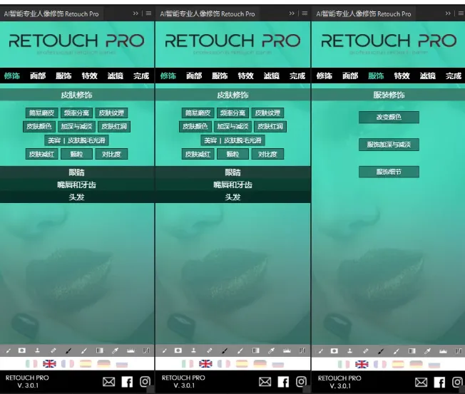 Retouch Pro是一款优秀的图像修饰插件,由于其强大的人工智能系统,您可以轻松就获得专业的效果,并且比以往的手动更快,效果更好,操作更简单,针对人物的皮肤、眼睛、头发、嘴巴、衣物等进行专业的修改和优化,提供超多专业的预设供您选择。