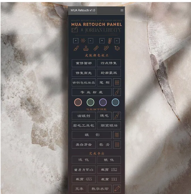 Retouch Panel皮肤美白润饰磨皮扩展面板插件是一个智能的Photoshop插件,扩展设计时考虑到化妆师产生微妙的,直观的,广告系列级润饰。由美容摄影师和修图师Julia Kuzmenko McKim以及化妆师,摄影师和修图师Jordan Liberty在Beauty Industry中工作多年开发而成,面板脚本现在仅供MUA Retouch面板用户使用。您无需成为Photoshop专家就能成功使用它。MUA大多数按钮使用通用的化妆品名称并模仿实际化妆品的效果,因此您可以快速浏览面板的各个部分并轻松确定每个按钮的用途。