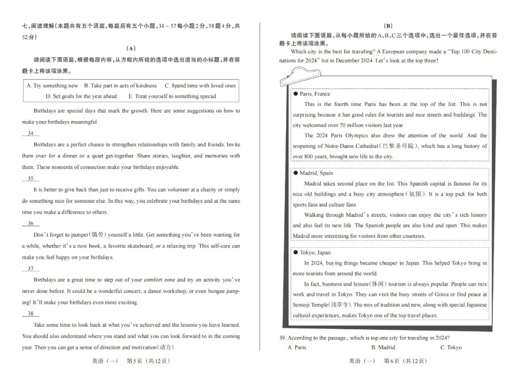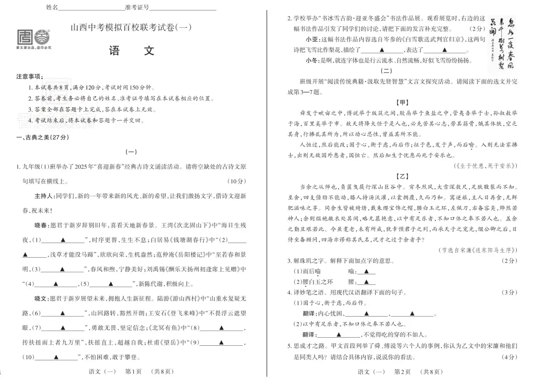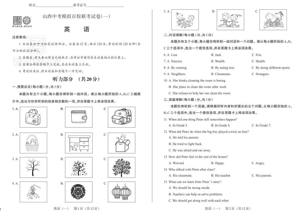【免费下载】25年百校联考(一)试题+答案+答题卡+音频