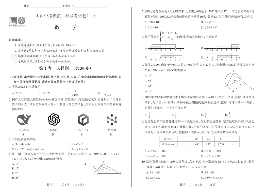 关注回复关键字“25百校联考一”领取完整电子版+答案