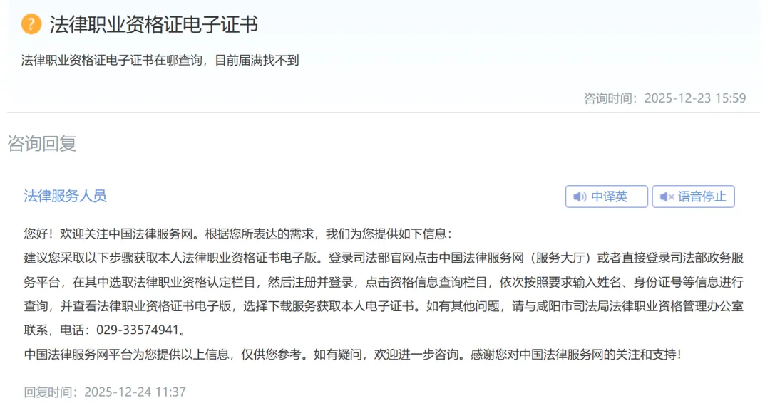 法律职业资格证电子证书在哪查询,目前界面找不到