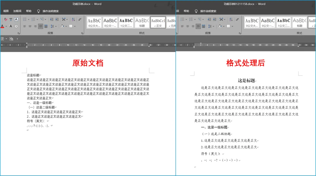 – 本程序无法处理图片格式,如果图片独立成段,本程序所用API识别到图片会被默认是空段落。为了防止图片删除,只能放弃处理空段落及图片格式;