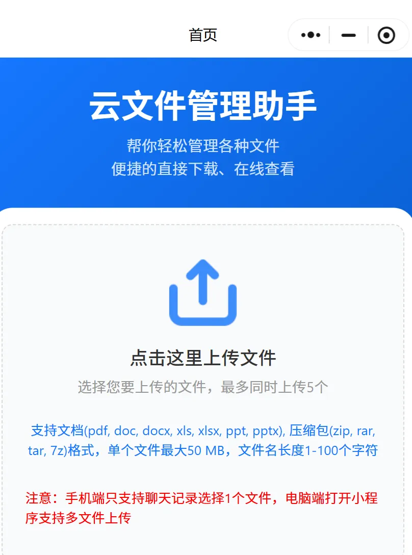 无需注册登录、不用下载APP,微信打开即用。上传文件→生成链接/卡片→粘贴到公众号,粉丝点一下就能直接预览、保存,全程流畅无广告。