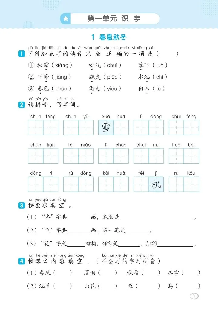 2025—2026学年春季部编版语文一年级下册《基础一课一练》,电子版可打印