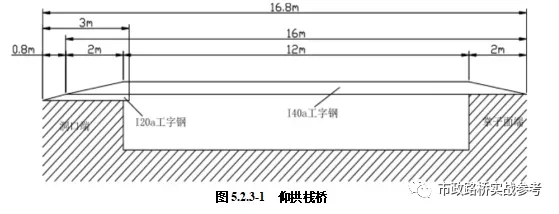 为保证隧道施工平行作业,仰拱施工采用自制仰拱栈桥。每幅栈桥采用3根I40a工字钢,三根并排间距40cm设置,顶部用Φ22螺纹钢筋连成整体,纵向间距10~15cm,I40a工字钢纵向两端做成2m长坡道,靠洞口一侧下部加设3m长I20a工字钢,I20工字钢设0.8m长坡道。两幅栈桥横向间距根据现场车轮轮距布置,保证车轮压在栈桥中部。I40a工字钢长度为16m,栈桥总长16.8m,净跨度按12m进行计算,详见图5.2.3-1。