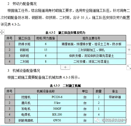 为了保证隧道施工顺利进行,配置施工管理人员负责隧道施工的组织管理和协调。根据整个施工组织划分,隧道施工为一工区施工范围,隧道施工管理人员配置详见表4.3-1。