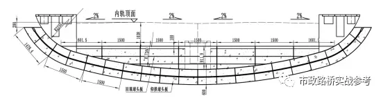 模板台车施工:二衬采用定制二衬台车施工,根据设计图纸要求,二衬每版12m,本隧道台车长度选用12.1m(搭接部分长10cm)。台车横坡调节采用在主油缸底部设置加高块的方式。
