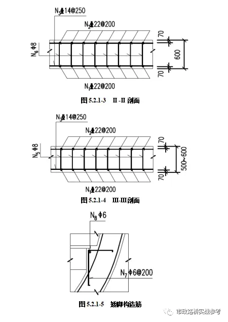 环向主筋为HRB400Φ22钢筋,纵向间距20㎝,净保护层为5cm;纵向钢筋为HPB300φ12钢筋,环向间距20㎝;箍筋为HPB300 φ12钢筋,主筋和纵向钢筋每个交点都应绑扎箍筋。、、钢筋采用半圆弯钩,采用直弯钩。