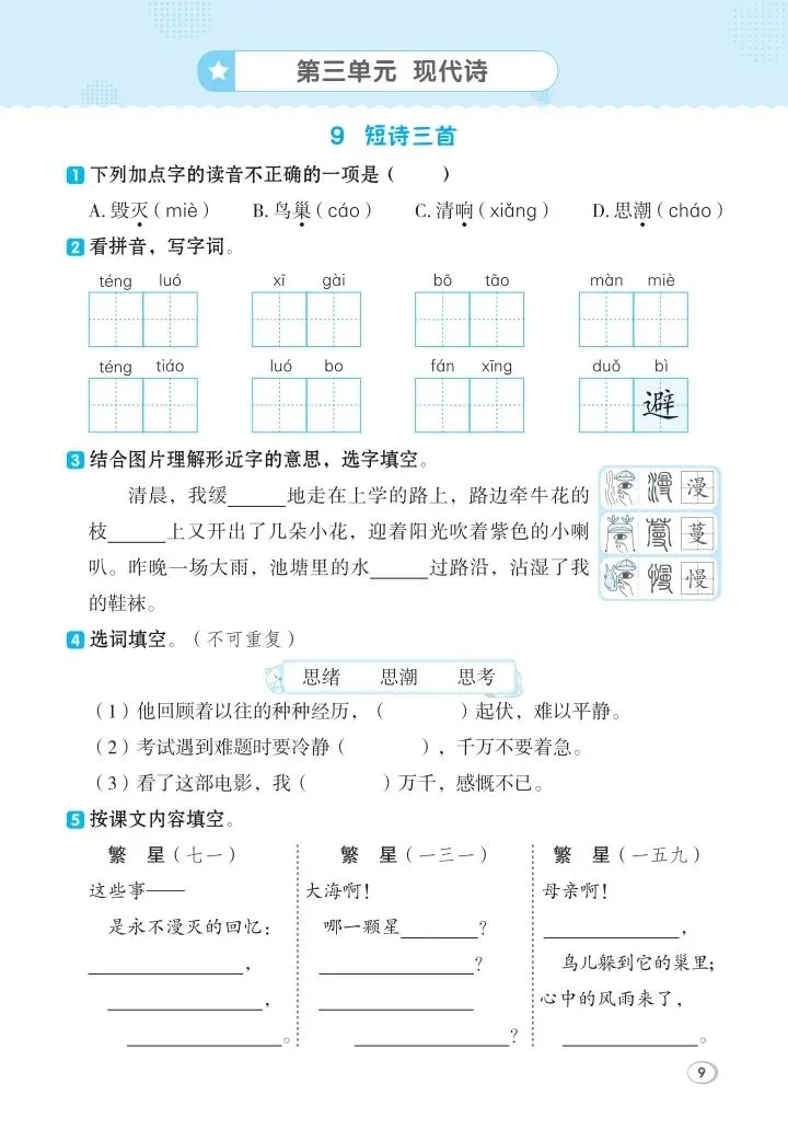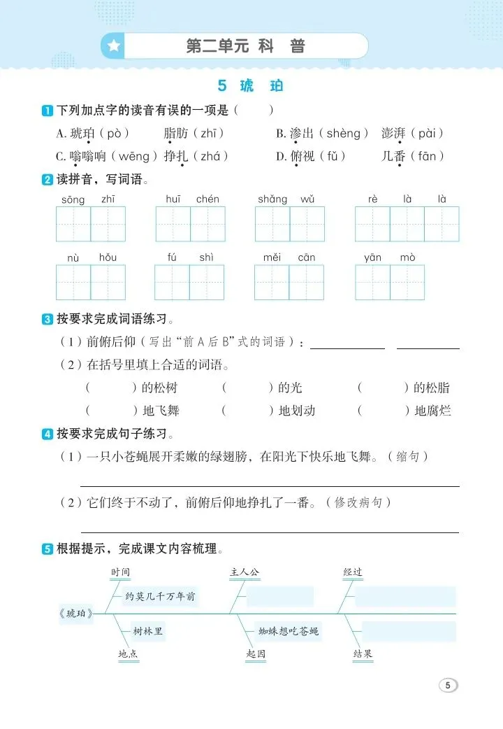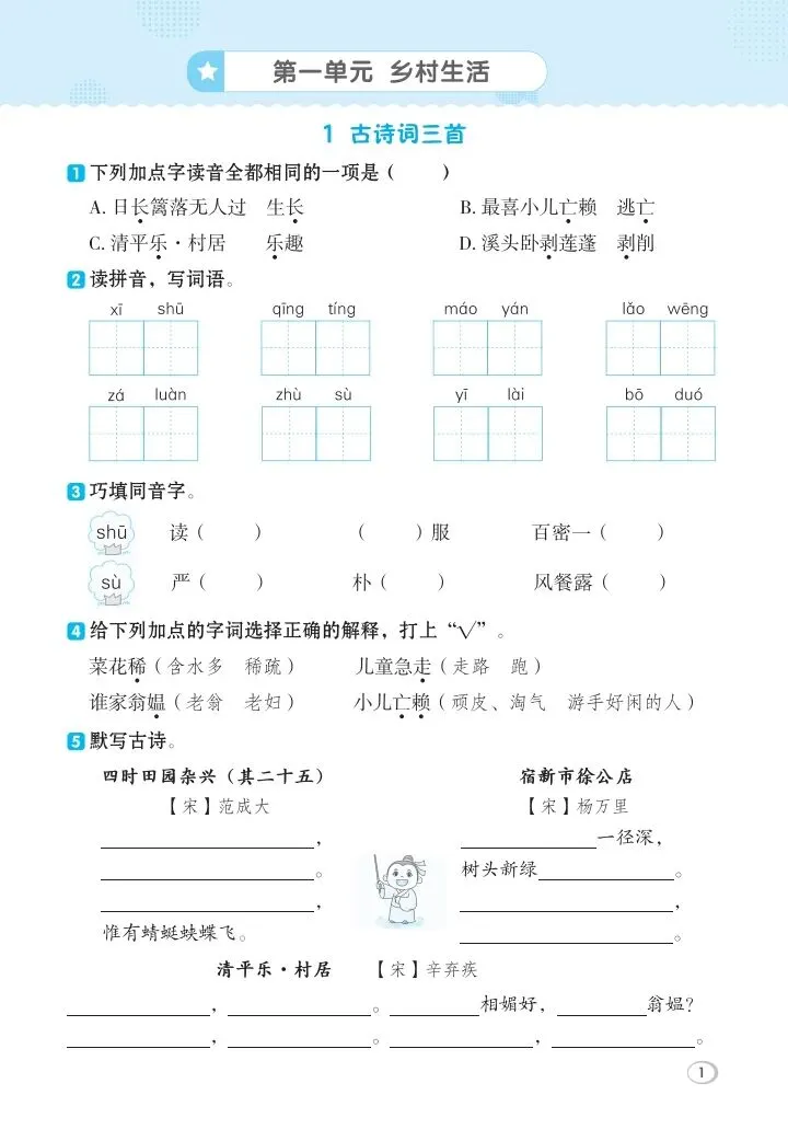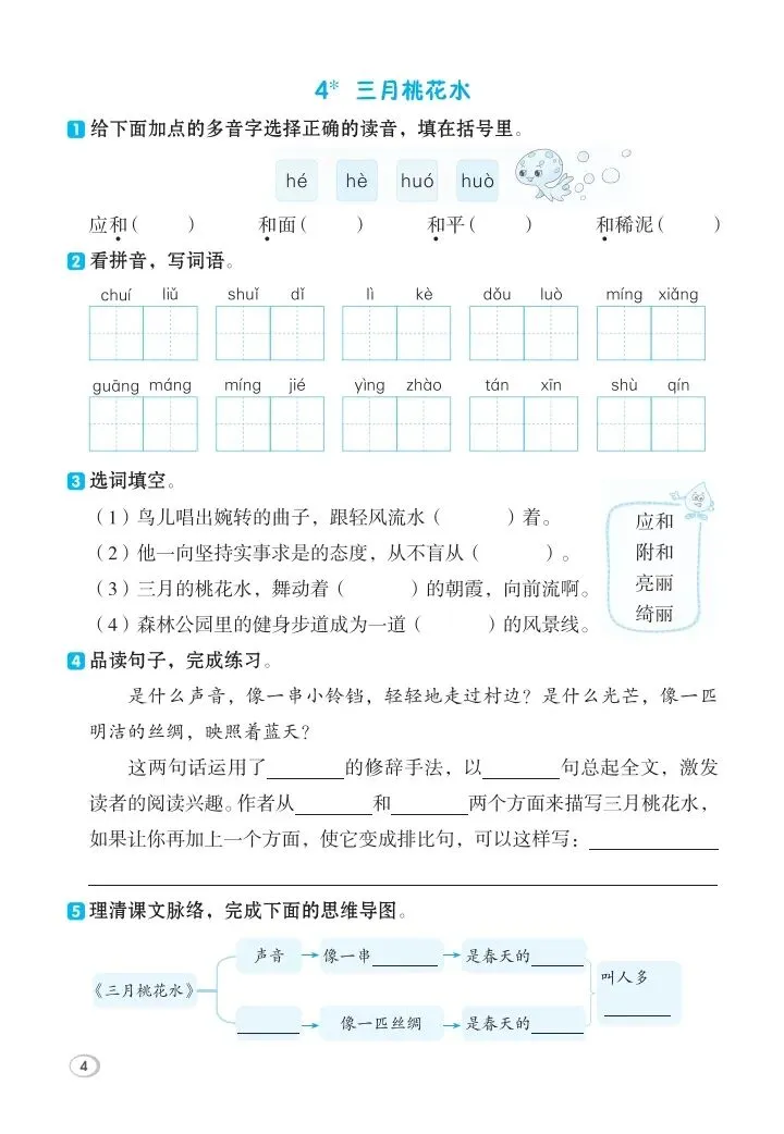 2025—2026学年春季部编版语文四年级下册《基础一课一练》,电子版可打印