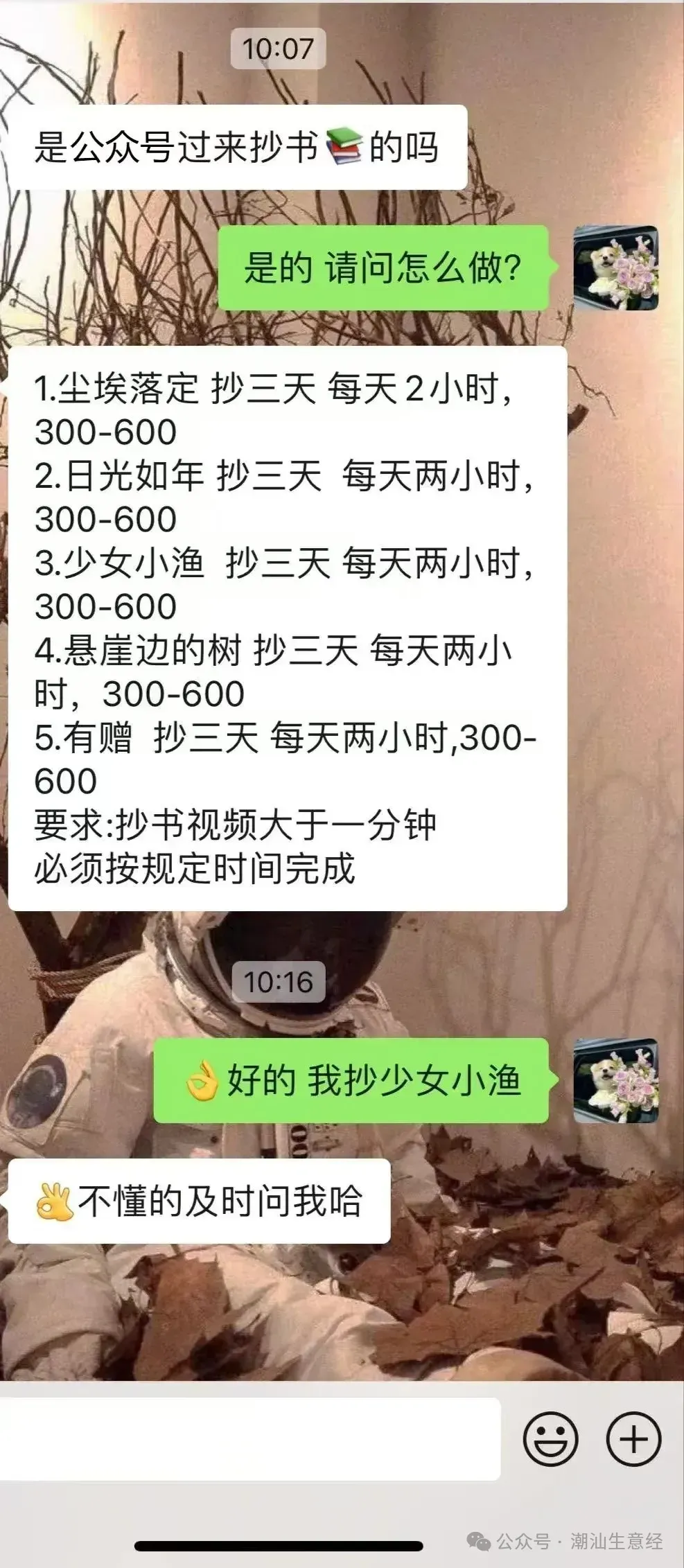 后来偶然接触到抄书这个行业,就一直在家做抄书,让我惊喜的是,竟然能稳定有收益,每天也有300左右,这可能就是无心插柳柳成荫吧
