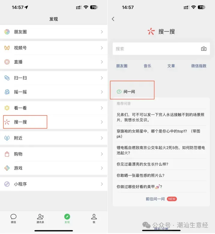 进入问一问方法也很简单,只需要从微信的搜一搜页面就可以进入。