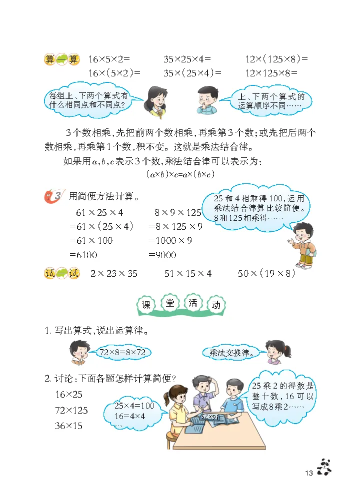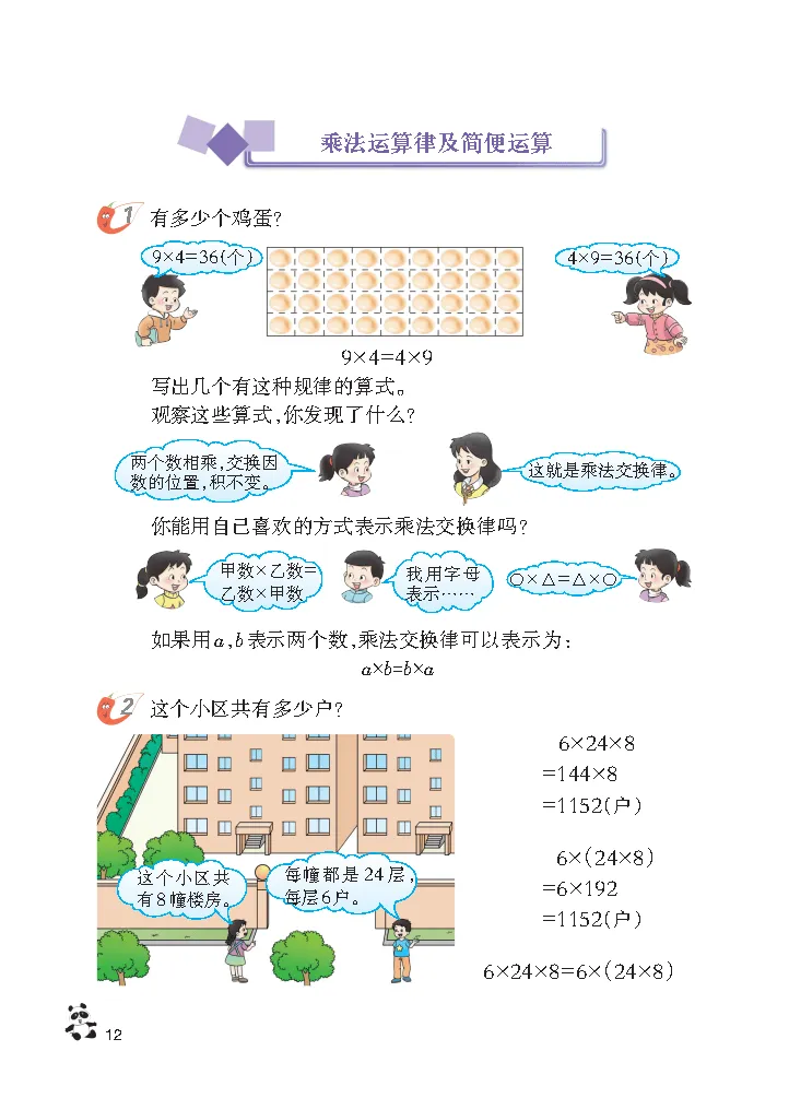 ,然后发送 电子课本 2026 春新西南大学版四年级下册数学第二单元核心主题为 “乘除法的关系和乘法运算律”,是衔接整数乘除法运算、掌握简便计算方法的关键单元,电子版课本同步新教材内容,结合生活化场景设计例题与练习,清晰标注核心考点、解题技巧和高频易错点,方便孩子课前预习、课后复盘,也为家长针对性辅导提供明确方向。本单元知识点围绕乘除法的关系和乘法运算律两大核心展开,贴合四年级学生运算能力进阶需求。乘除法的关系部分需掌握乘除法互逆的核心逻辑,牢记无余数除法中 “一个因数 = 积 ÷ 另一个因数”“被除数 = 商 × 除数”“除数 = 被除数 ÷ 商” 的关系式,以及有余数除法中 “被除数 = 商 × 除数 + 余数” 的规则,同时明确0 不能作除数的重要结论;乘法运算律则重点掌握乘法交换律和结合律,乘法交换律是两个数相乘交换因数位置积不变,用字母表示为 a×b=b×a,乘法结合律是三个数相乘先把前两个数相乘或先把后两个数相乘积不变,字母表示为(a×b)×c=a×(b×c),能运用这两个运算律进行乘法简便计算和验算。电子版课本还标注了本单元三大高频易错点:一是混淆有余数和无余数除法的各部分关系式,二是运用乘法结合律时遗漏括号导致计算错误,三是验算时未正确使用乘除法互逆关系,建议结合买笔、挂灯笼、算小区户数等生活化实例强化练习,精准规避错误。