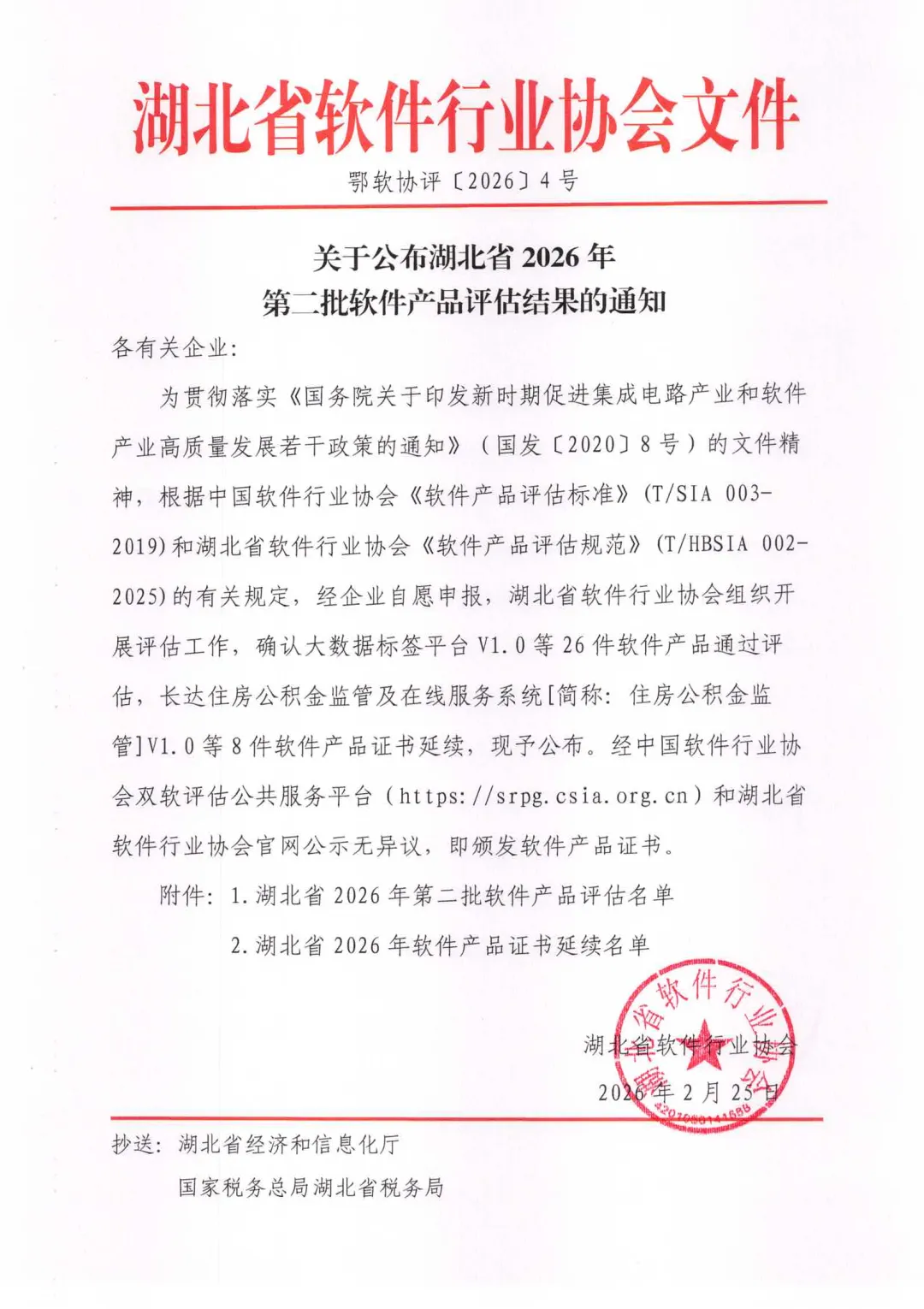 关于公布湖北省2026年第二批软件产品评估结果的通知