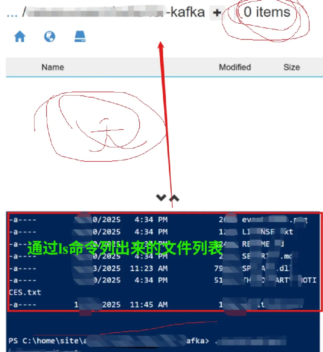 某次部署项目文件后,进入App Service的高级工具(Kudu)下的查看文件的页面中,遇见奇怪现象: