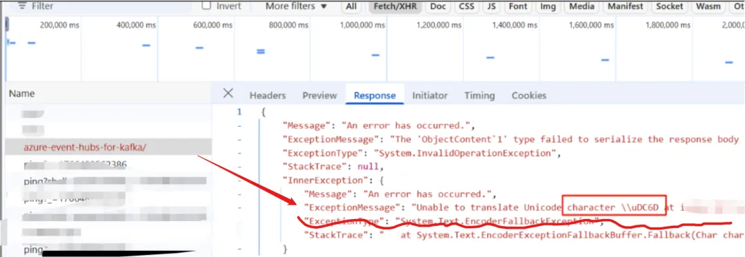 比如当前的情况下,就可以发现错误信息:Unable to translate Unicode character \uDC6D at index 11 to specified code page.