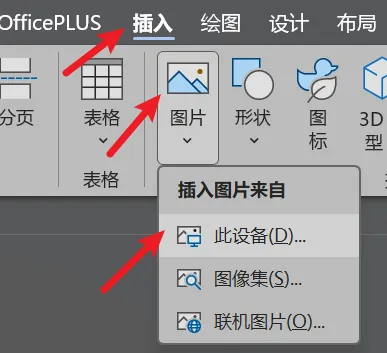 打开Word,依次点击「插入」→「图片」→「此设备」,选中刚才拍的照片。