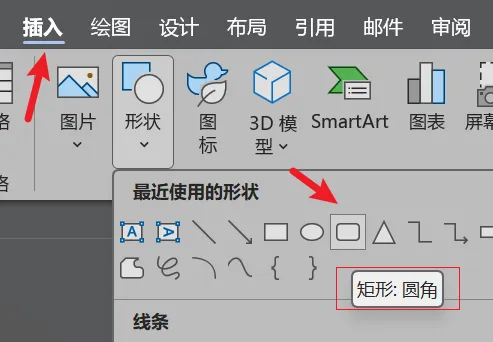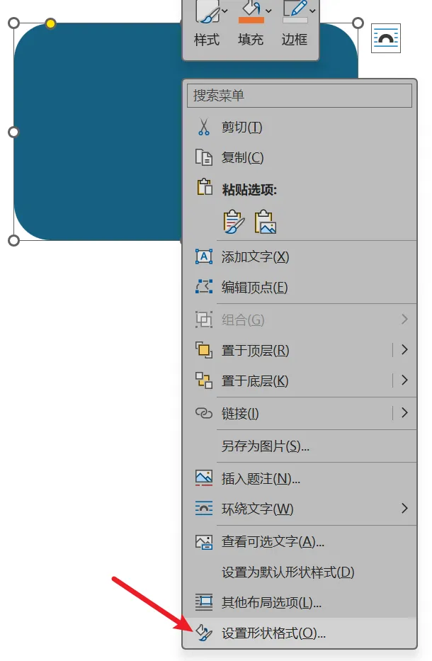 选中圆角矩形,在顶部「形状格式」选项卡里,找到「大小」区域。