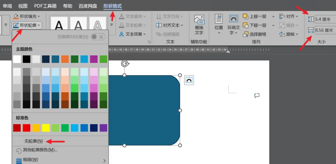 继续选中矩形,点击「形状轮廓」→「无轮廓」,去掉边框线。
